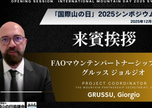 2025年12月6日、「国際山の日2025」記念シンポジウム テーマ:「山と水:氷河と流域社会を考える」が開催されました。 本シンポジウムの冒頭では、ローマに本部を置くFAO(国連食糧農業機関)山岳パートナーシップ事務局より、私たち日本の「山の日」へのエールと共に、世界が直面する課題についての力強いビデオメッセージが届きました。