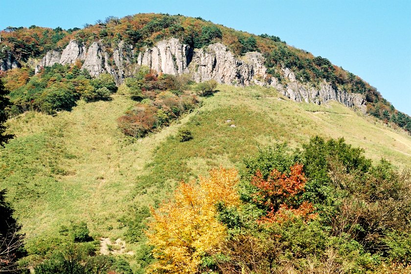 原地形は約2万年前の噴火による溶岩円頂丘によるものと見られています。北面にある